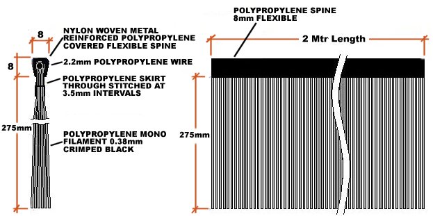 - 275mm spray suppressant flexible brush strip