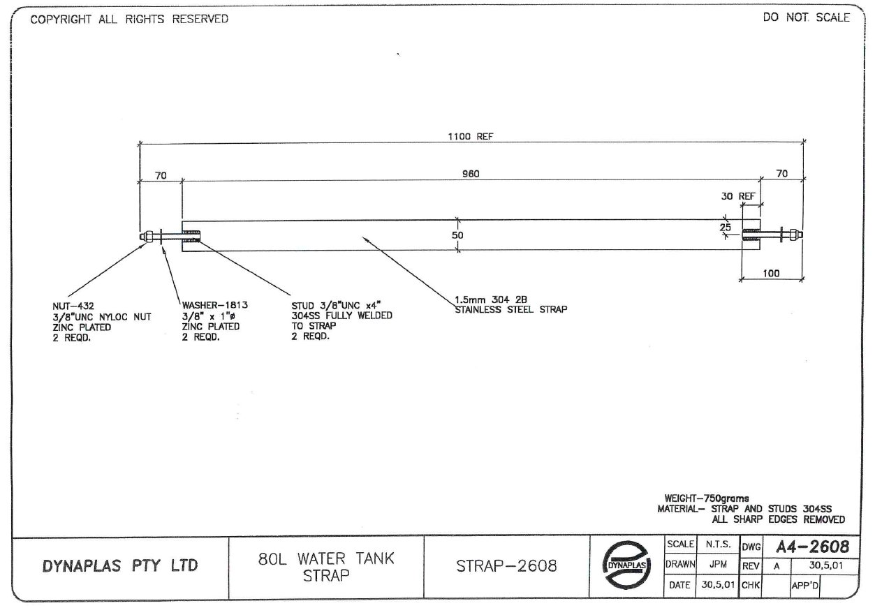 Stainless steel mounting straps are available separately and are designed specifically to suit the Dynaplas truck water tank.