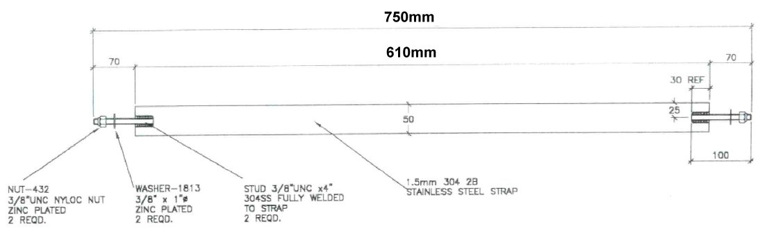 Stainless steel mounting straps are available separately and are designed to suit the Dynaplas water tank for secure installation.